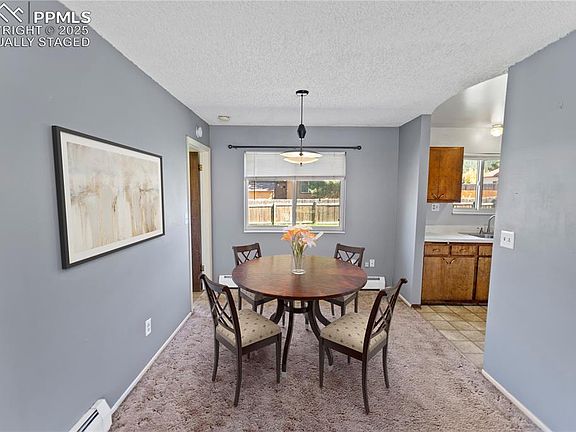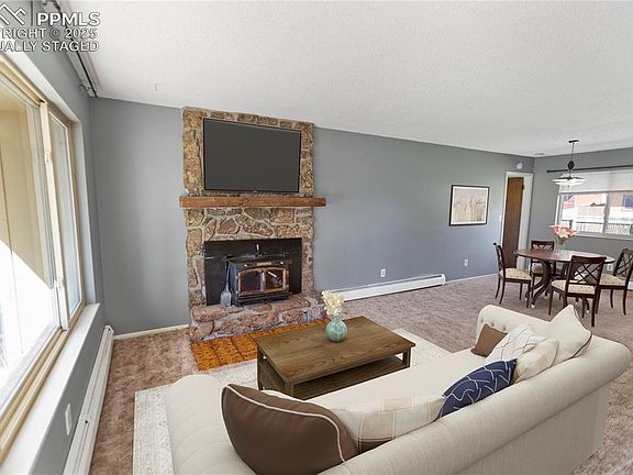 Welcome to this charming single-level ranch-style home offering 1,268 square feet of comfortable and functional living space in a quiet well-kept neighborhood. This home features 3 bedrooms and 1.5 bathrooms, making it ideal for families, first-time buyers, or those seeking easy, one-level living. The spacious living room is warm and inviting boasting large windows that fill the space with natural light, and a cozy fireplace with an airtight wood stove insert and a beautiful rock surround and mantle. The home offers a functional kitchen, pantry, and a designated dining area perfect for everyday meals or entertaining. The primary bedroom includes a private half bathroom and closet, while the centrally located full bathroom features a tub/shower combination and is conveniently situated near a spacious linen closet. Two additional bedrooms offer large windows and good-sized closets, providing comfort and space for family members or guests. Additional highlights include an oversized laundry/mudroom area that easily accommodates a full-size washer and dryer and storage or pantry space, hot water baseboard heating and upgraded double-pane windows and attic insulation. The attached two-car garage is generously sized, insulated, and features a new garage door opener and controls, offering excellent space for storage or a workshop. Situated on a good-sized, fenced lot in a sunny and open neighborhood, this home is centrally located within walking distance to schools, parks, a library, churches, a restaurant, hiking trails, and the municipal swimming pool. With an easy commute to Colorado Springs, Divide, Florissant, and Cripple Creek, this home offers the perfect combination of comfort, convenience, and community. Don’t miss the opportunity to make this home your own.