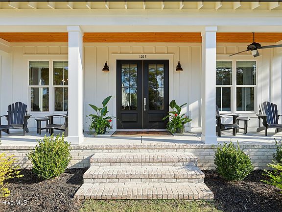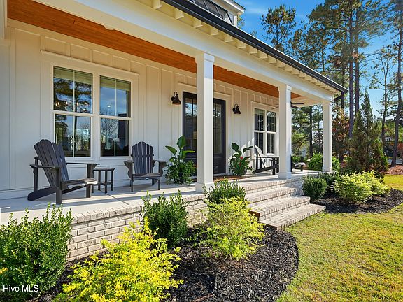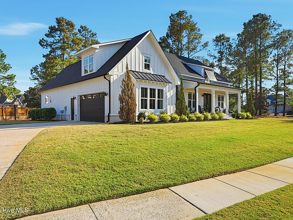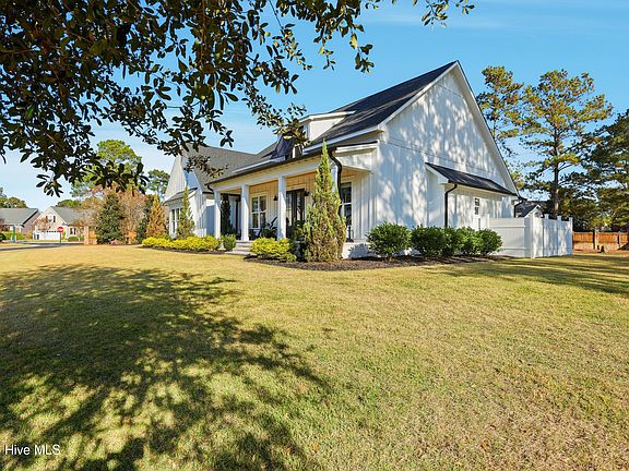 If you're looking for a showplace, this extraordinary custom farmhouse is highly admired throughout the neighborhood. Situated on an oversized corner lot close to the amenities, the rocking chair front porch invites you in. Enter the foyer through the 8' French doors and admire the high ceilings, craftsman details and luxury vinyl plank flooring throughout. Spacious open floor plan from the dining room to the great room featuring a gas fireplace flanked by lighted built-ins. Transition to the gourmet kitchen, highlighted by a magnificent island, granite countertops, custom cabinetry & under cabinet lighting. The walk-in butler's pantry provides additional storage & convenience. The primary suite features a lighted tray ceiling & private spa-like bath with a luxurious walk-in shower, freestanding tub, two vanities, + water closet. Continue to the generous walk-in closet with wooden shelving. Two additional bedrooms, Jack & Jill bath plus a powder room & laundry room finish the first floor. The upstairs bonus room has a full bath, walk in closet with cubbies, and is perfect as a guest suite, office or craft space. Outdoor entertaining begins with the telescoping glass doors opening to a 28' covered back porch including a wall mounted TV & continues to the custom paver patio perfect for a firepit + concrete table & benches to remain. Backyard privacy fence with mature trees provides a serene backdrop for daily living. Additional features: oversized 2-car garage + storage, irrigation well, exposed rafters, & Bahama shutter. Neighborhood amenities + low HOA dues include: 2 outdoor & an indoor salt water pool, 2 clubhouses, fitness facility, library, game room, locker rooms, tennis/pickle-ball/basketball, playground, picnic/grilling area, soccer field, sidewalks, streetlights & social activities. Magnolia Greens has a 27-hole golf course with pro shop & restaurant. Convenient to shopping, dining, & medical offices. Only 10 mins to Downtown Wilmington & 30 mins to beaches