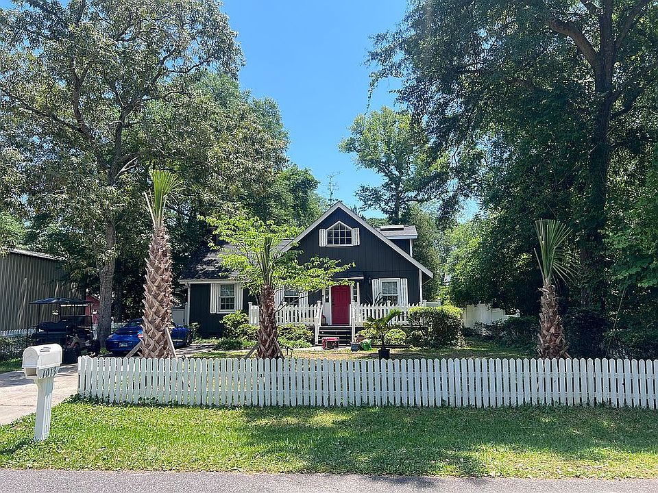 3 Bedroom, 2 Bath beach bungalow, just 3 blocks from the ocean in Surfside Beach! Hardwood pine floors and white tile throughout. The 3rd bedroom is lofted and opens to an open concept, vaulted ceiling entryway. The home also contains a wood burning fireplace. Brand new Frigidaire refrigerator with dual ice makers and slide-in stove. The washer and dryer are also new. Enjoy a large front and rear deck, 6' privacy fence, and a 6 zone sprinkler system. The property is covered with planted landscaping. The large back deck has a built in standard size grill, alongside a very large BBQ pit! There's also an outdoor shower.