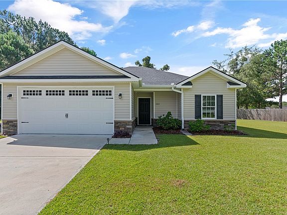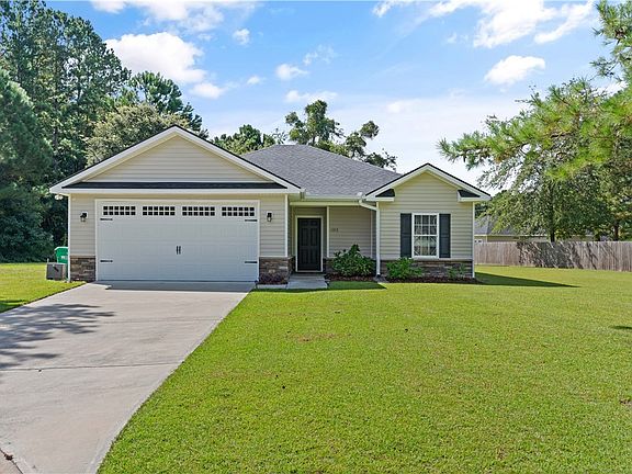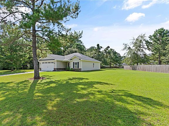 This charming 3-bedroom, 2-bathroom home is nestled on a lovely half-acre lot in a peaceful cul-de-sac, ideal for comfortable living. Inside, you’ll find a spacious living room and kitchen adorned with beautiful cabinetry and an oversized pantry. The home features tile flooring throughout, with cozy carpet in the bedrooms. The master suite includes a generous walk-in closet, double vanities, a 6-foot garden tub, and a separate shower. You'll appreciate the ample closet space available throughout the house. It has been meticulously maintained and includes a front door with keyless entry that can be connected via Bluetooth to your phone. Only approximately 35-45 minutes from St. Simons Island and Jekyll Island beaches! NO HOA'S and NO FLOOD ZONE!