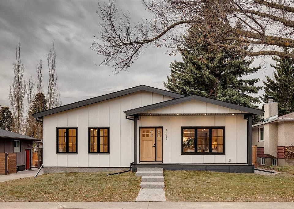 Welcome to 1013 31 Avenue NW, a rare newly renovated 1,800 sq. ft. bungalow perfectly positioned in the heart of Cambrian Heights. One of Calgary’s most sought-after inner-city communities. Just steps from Confederation Park, this home offers the ideal balance of inner-city convenience and quiet, tree-lined living. From the moment you arrive, the curb appeal is undeniable. A covered composite front porch and a brand-new exterior finished in a timeless combination of board & batten and stucco set the tone for the craftsmanship found throughout. The property also includes a newly built oversized double garage with alley access. Step inside this modern farmhouse bungalow to discover a bright, open floor plan with 9-foot ceilings at the entry, creating an immediate sense of space. The living room features a gas fireplace with custom built-ins, flowing seamlessly into the chef’s kitchen, complete with custom cabinetry, new KitchenAid built-in appliances, and a 10-foot waterfall island. Adjacent to the kitchen is a walk-in pantry, and beyond that, a spacious dining area with a custom bar that opens through 8-foot sliding doors to a south-facing backyard and large entertaining deck. The main floor also includes a beautifully designed main bathroom, a second bedroom that can double as an office, and a mudroom with built-in storage leading to the rear deck and garage. The primary suite is a true retreat - featuring 9-foot ceilings, a large walk-in closet with custom wardrobe cabinetry, and a resort-inspired ensuite with double vanity, heated floors, and a custom rainfall shower. The fully developed lower level continues to impress with a massive rec room with a bar, a beautifully designed laundry room, two additional bedrooms, and a spa like bathroom with a large shower and heated floors. This home has been completely renovated inside and out. Including new electrical, plumbing, HVAC, furnace, and central air conditioning, offering the peace of mind of a brand-new home in a highly established and desirable location.