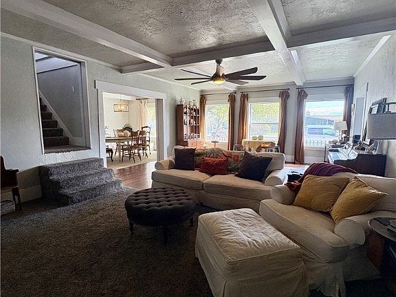 REDUCED! This turn of the century home is listed to sell and in today’s market it’s a steal especially with what this exquisite home has to offer with its character and charm. 4 bed 2 bath , 3491 square feet of living space. From the entry to the library, with built in shelving, you will walk into the the living room with open beam ceiling and a wood fireplace that will be the center of attention when entertaining guests or relaxing quietly at home by the fire. The spacious dining room will be ideal for conversation while sharing a meal around the table. The kitchen has plenty of cabinet space and a butler pantry with an exterior door. The primary bedroom has a cozy window seat, a walk in closet, to be envied with an exterior door that leads you out to the courtyard with a fireplace. Primary bathroom is tiled with double sinks. Follow a beautiful banister that takes you up to 3 large bedrooms and a bathroom. New roof, carport, 2 car attached garage and large basement great for storage.