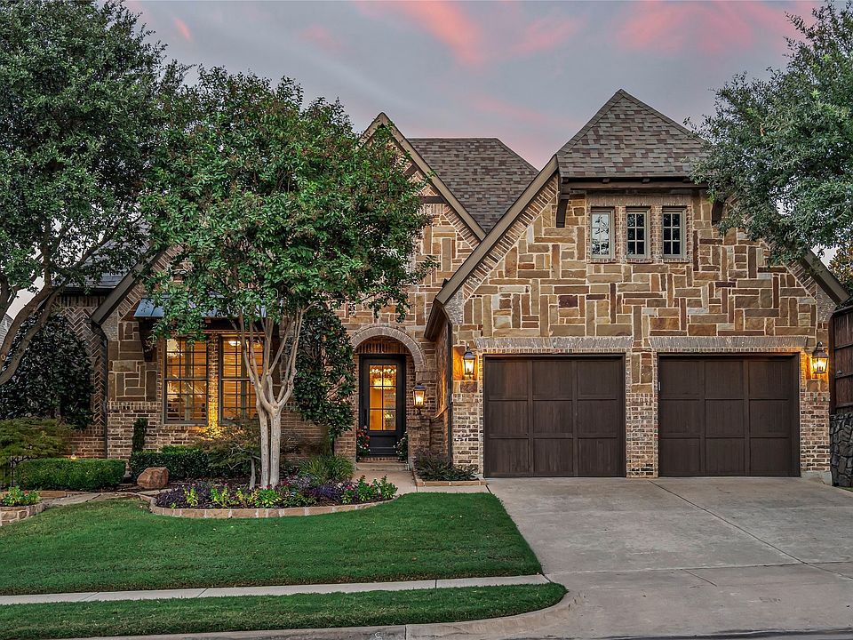 The family room beckons with its custom cast stone fireplace and seamless flow to your private backyard oasis. Retreat to the luxurious primary suite featuring plush carpeting, designer lighting, and a spa-inspired en-suite with a grande vanity, custom dry bar, soaking tub, walk-in glass shower, and generous closet.