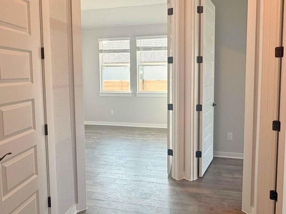 MOVE IN READY | 4 Beds | 3 Baths | Study | Kids’ Den | 1-Story | 2-Car Garage | 50' Lot | Say hello to the Colby — the one-story home that finally gives everyone their own space and keeps the main living areas feeling bright, open, and effortlessly stylish. Step into the welcoming entrance foyer, where a front bedroom with a walk-in closet pairs with a dedicated study with French doors — both sharing a full bath and nearby storage closet. The hall tree and utility room at the garage entry keep daily clutter from creeping into the main living areas (a millennial mom miracle). The heart of the home features an open-concept living area with cathedral ceilings and tons of windows. The kitchen brings all the wow with a large eye-shaped island, quartz countertops, white skinny shaker cabinets with matte black hardware, built-in appliances, a walk-in pantry, and plenty of counter and cabinet space. The adjacent dining area leads straight to the covered outdoor living space, making weeknight dinners or weekend grilling easy. Off the kitchen sits the cozy kids’ den, perfectly placed between Bedrooms 2 and 3 — all with access to the shared full bath. The primary suite, tucked privately at the back, includes a tray ceiling, big windows, and double doors leading to an ensuite bath with separate vanities, a soaking tub, walk-in shower, linen closet, and a spacious walk-in closet. With designer upgrades throughout, no carpet, and a desirable 50' lot, the Colby is stylish, functional, and truly move-in ready. Visit our model and ask about current buyer incentives!