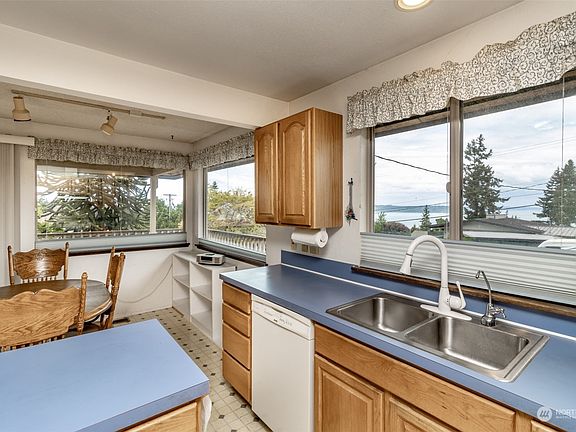 Sound View Home in coveted Marine Hills!Breath-taking views of the Puget Sound and Olympics from this 2,690 square ft,5 bedroom,3 bathroom home with an over-sized 2-car garage and lots of parking.Ideal light-filled floor plan.Kitchen has gas cooking and a view from the kitchen sink!Living room with vaulted cedar ceilings and gas fireplace.Spacious dining room with gas stove.Primary bedroom has a walk-in closet and it's own bath.Large separate RV driveway with parking for a boat or motorhome. Large covered deck ideal for taking in the view.Over a half an acre lot with beautiful plants and a plumb tree.Home has a great location,view,house size and yard size.It is ready for someone to buy and do cosmetic improvements to make it their own!