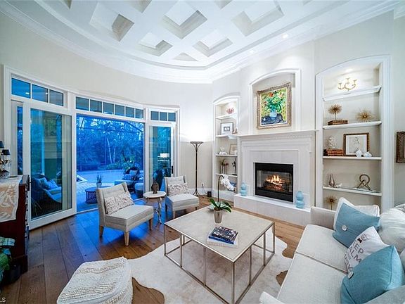 H.749 -WOW! Look no further...This warm and inviting home is everything you have been waiting for. Metal front door opens to the richly appointed living room w/ coffered ceilings, built-ins, stone fireplace, french doors. A chef's delight in this completely remodeled kitchen: white cabinetry and custom island, Marble countertops & back splashes, Jenn-Air appliances, pantry. Family room is accented by custom built-ins and corner pocketing sliders to the covered lanai. Owners suite is highlighted by gas fireplace, sitting area, french doors to covered lanai. Remodeled bathroom with newer vanities, oversized walk-in shower and separate tub. Owner's closet was expanded and fitted with built-in closet system. 2 additional bathrooms have also been beautifully remodeled. Warm wide plank engineered flooring throughout the home, plantation shutters, blinds & updated lighting throughout, LED landscaping lighting as well. Captivating and privacy abound in this property. Screened lanai space with infinity edged pool on 2 sides, spa, ample paver decking. Conveniently located within minutes of Mercato, Waterside shops, downtown Naples and of course the sandy beaches of the Gulf of Mexico.