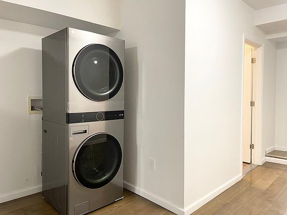 The apartment features brand new stainless steel appliances, including an electric stove, refrigerator, microwave, and dishwasher. Brand new hardwood flooring throughout the unit. Full size washer and dryer. Central AC and heat.