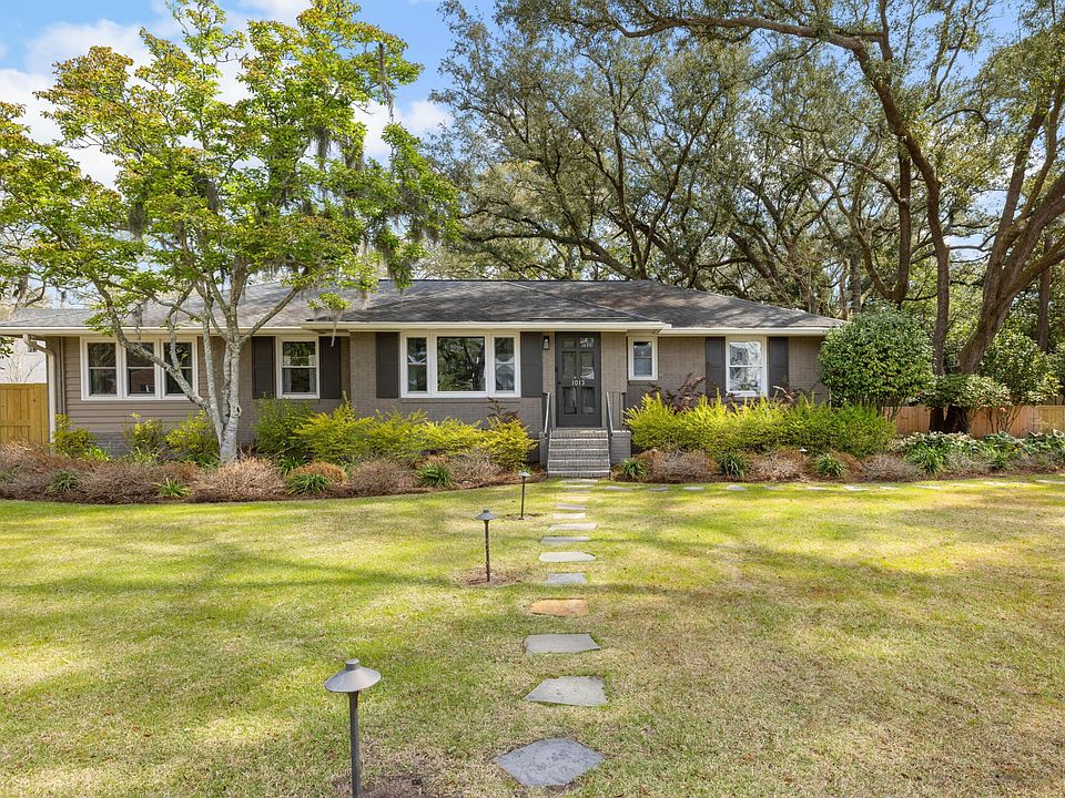 Enjoy a beautifully renovated light filled home with an open floor plan nestled on .49 acre in the Groves! As you pull up to the property, you are instantly struck by the mature nature of the azalea bushes, colorful camellias and trees. The bright and airy interior of the home boasts an open floor plan, crown moldings, hardwood flooring and recessed lighting. Upon entry, you are welcomed into a lovely living room with built-ins. The heart of the house is the kitchen area, which encompasses a large center island with seating, custom cabinetry, gas range, stainless appliances, and an immense amount of storage. The kitchen is open to the breakfast room and vaulted family room. This area flows seamlessly through multiple sets of glass doors to the patio and gorgeous backyard with fire pit or onto the cozy screened in porch complemented with bead board ceiling. The dining room is through a cased opening off of the kitchen area. Additionally, there is a flexible room off of the family room that can be used for multiple uses, i.e, fourth bedroom, home office, gym, playroom, etc. The home entertains like a dream both inside and outside. The luxurious master bedroom with a large walk-in closet and beautiful bath is on one side of the home, while the other two bedrooms, two baths and laundry room are on the other side of the home. It's an ideal one story floor plan and has a lot of flexibility for today's lifestyle. The storage shed with an overhang is generously sized to allow easy storage for a golf cart. This home allows for the ultimate urban lifestyle yet on one of the largest and most private lots in Mt. Pleasant! Top rated schools, restaurants, Sullivan's Island beach and Charleston are all just minutes away! Move right in and start living!