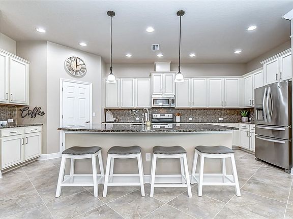 Magnificent pool home with remote controlled multiple-colored lights built in the pool along with remote control jets in the hot tub. Home built by David Weekley in 2015 is in the desired gated community of 'reserve at Hunters Lake with 4 bedrooms and 3 baths and will impress you with its like new impeccable appearance. Gorgeous tile radiates throughout an open floor plan with a spacious kitchen featuring bright cabinets, Caledonia granite countertops, stainless steel Whirlpool Appliances, an 8-foot counter height expansive island, and a stunning backsplash accentuating its beauty. Enormous master bedroom with a huge walk-in closet, double vanities with granite countertops, fabulous walk-in shower. The living room has double sliders leading outside to your private lanai which is completely screened in and offers a wonderful, heated pool and spa perfect for relaxing at the end of your day. Low HOA and no CDD. Only 20 miles from Downtown Tampa, easy access to Interstate 75 and Interstate 4. Close to fine dining, shopping, entertainment, recreation, schools and much more.