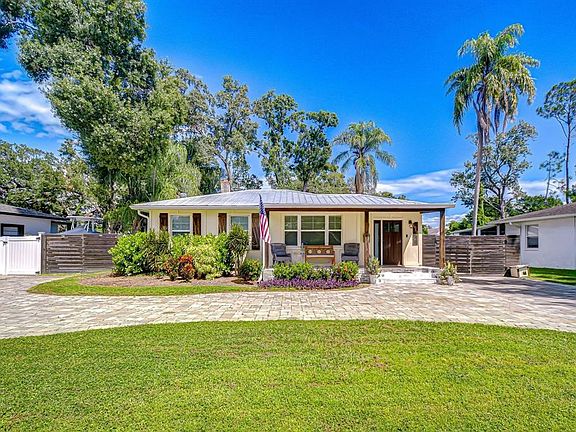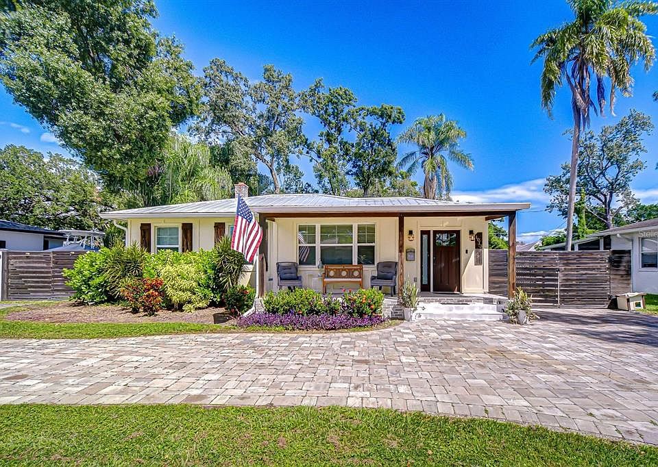 Location, Location, Location! This exceptionally charming 2-bedroom, 2 bathoom bungalow in Wellswood offers 1,453 sq. ft. of thoughtfully renovated living space that blends modern updates with timeless character. The home features a metal roof and a paved circular drive for easy access and curb appeal. Step inside through the mudroom and cozy up by the fireplace in the inviting living area. The breakfast nook with a built-in coffee bar provides the perfect spot to enjoy your morning coffee. An indoor laundry room adds convenience, making this home truly move-in ready. Enjoy outdoor living on the spacious back porch, ideal for cookouts or relaxing by the fire pit. The detached rear garage offers ample storage space and is perfect for a workshop or DIY Projects. Located just minutes from Raymond James Stadium, Downtown Tampa, Riverwalk, and Tampa International Airport, this home combines comfort, charm, and convenience with no HOA fees.