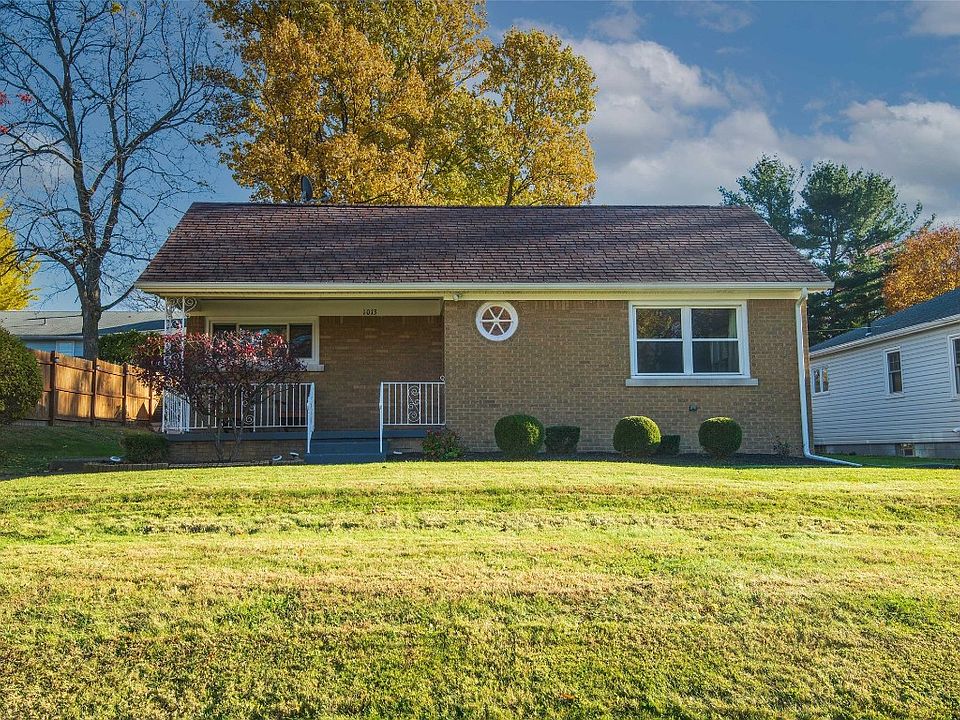 This charming brick ranch offers an abundance of space and versatility inside and out! Step through the inviting sunroom porch featuring heated floors and into a large kitchen with newly refinished cabinetry, stainless appliances and plenty of workspace. A formal dining room and comfortable living room provide great flow for daily living or entertaining! The primary bedroom includes a private attached bath, while two additional bedrooms share a full hall bath. A potential fourth first-floor bedroom with its own attached bath offers great flexibility for guests, a home office or an in-law setup. The lower level provides tons of storage and ample room to finish for additional living space. Brand new hot water tank just installed. Outside, enjoy a cute, easy to maintain yard, detached two-car garage, and convenient off-street parking accessible from a quiet dead-end street. With generous square footage, functional layout, and so much potential, this home is ready for its next chapter!