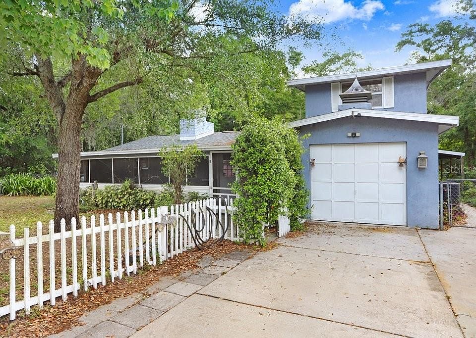 Discover the opportunity and charm of this unique property nestled on a private, fully fenced lot surrounded by mature trees and natural Florida landscaping. Offering a peaceful, tucked-away setting, this home features a 2023 roof, a new well pump, and a new water softener system, giving a solid head start for anyone looking to make it their own. The home offers 2 bedrooms and 1 bathroom, with a cozy layout that includes a brick wood-burning fireplace, tile flooring in the main areas, and an inviting screened front porch perfect for enjoying quiet mornings or shaded afternoons. The kitchen provides a functional space with great natural light and the potential for future updates to suit your style. An additional detached structure with covered entry adds versatility—ideal for a hobby space, workshop, home office, or extra storage. If you're looking for a property with character, space, and the chance to customize it into something truly special, this home has the bones and location to bring your vision to life. Great potential with key upgrades already in place!