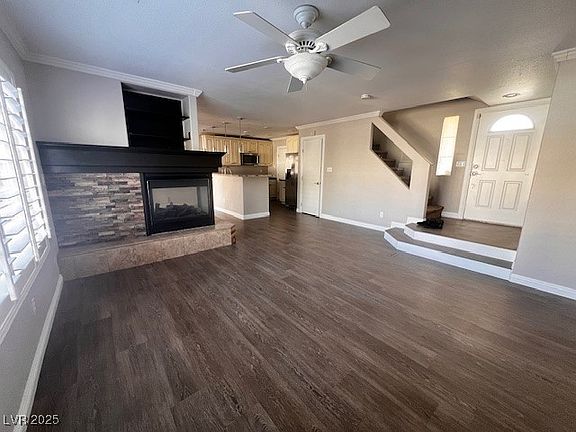 Beautiful Silverado Ranch home. Features a two-way fireplace between the living room and dining area with custom tile and mantle. Crown molding downstairs, kitchen with granite bar and sold countertops and stainless-steel appliances. Ceiling fans and ceiling lights throughout. Living room and primary bedroom has shutters on the windows. Primary bedroom has WIC and private bathroom. Upstairs loft. Covered patio off the dining area.