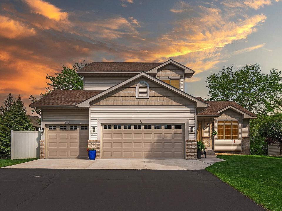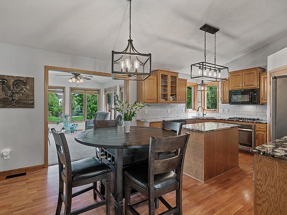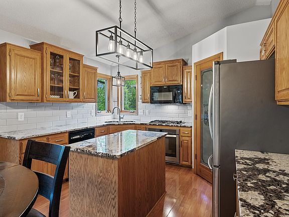 Welcome to your dream home in the Preserve of Elm Creek! This luxurious home features a master suite with walk-thru closet, garden tub, and separate shower. 3 bedrooms all on same level. The main level boasts a bright, open kitchen with new granite countertops and custom tiled backsplash. Vaulted ceilings, ample storage, alongside a large office and laundry. Enjoy the stunning four-season porch and fully finished lower level with an updated bathroom. Step outside the walkout basement to a stamped concrete patio, maintenance-free deck, and breathtaking pond views. Recent upgrades include a new granite countertops, custom tile backsplash, updated basement bathroom, new water softener and water heater. Don't miss out as this one will not last long!