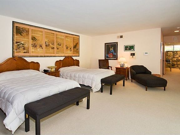 Great opportunity in this private tranquil 3BD/3.5BR Mid-Century oasis featuring a lagoon pool with waterfall, mature Japanese inspired grounds and large circular motor court located in one the best areas of prime Beverly Hills Post Office. Double door entry takes you into an open floor plan boasts a wonderful indoor/outdoor flow and includes a formal dining room with fireplace, eat-in kitchen with service entrance, elegant wood paneled office with custom built-in bookcases, 2 fireplaces and sound system throughout. Entire top floor is a charming guest suite offering an attached bath and large walk-in closet. Spacious Master suite is completed by his and her marble baths with sunk-in tub and separate shower, linen room, walk-in closet, and private dressing areas.