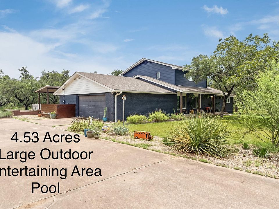 Modern fully renovated Country Estate with an amazing outdoor entertaining area on 4.53 acres on a private road just 22 mins to downtown Austin. This stunning property is located between Oak Hill & Dripping Springs. The home features 4 beds/3 full baths, 3 large living/dining areas, a gorgeous light filled kitchen, custom built stairs, wood burning fireplace & a 600 sqft garage w/a private attached workshop! 2025 Upgrades & Improvements Brand new windows & all new full light exterior doors, New quartz countertops in the kitchen/baths & laundry room, All new interior paint, Custom painted kitchen/laundry & hall linen cabinets, New lighting & plumbing fixtures, New LPV flooring in the laundry & entire upstairs, Acacia hardwood in the downstairs bedrooms, New modern large profile tile in downstairs bathrooms and THAT’S JUST IN THE HOUSE! OUTDOOR Updates & Features Include: Newly rebuilt 450 sqft lounging deck, 18 ft modern pitched roof pergola for outdoor dining, Serene royal koi pond surrounded by large native beds/xeriscaping, Newly resurfaced 18,000 gallon inground pool (2025), Brand new hardiplank siding & paint (2025) & brand new paint throughout interior of home KEY FEATURE This home has BOTH city and well water!!! Additional Outdoor features: 700 sqft deer fenced garden, 100 foot chicken run, Custom built chicken condo w/nesting boxes, 500 sqft storage barn, 4 newly installed raised garden beds, custom built inground Royal koi pond, well house, 200 sq ft she shed, mower shed ALL organic dirt used in the garden. NO PESTICIDES used on this property EVER! 20+ minutes to downtown Austin, 5 minutes to Bellterra shopping & dining, 12 mins to Dripping Springs & 2 brand new HEB shopping centers w/in 5 mins All of this on your own little private road across from a huge 360+ acre environmentally protected ranch where you can see exotic game & native texas longhorns graze right out of your front living room window! Super unique property a must see!