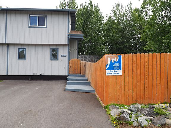 This 2 bedroom zero lot line townhouse style unit is located off Old Seward south of Dimond and north of O'Malley. Kitchen, living room, washer and dryer and access to back yard are located on the main floor. Upstairs are two bedrooms and one full bath. Comes with a large yard with a storage shed and RV/Trailer parking! No smoking. Tenant pays all utilities.
