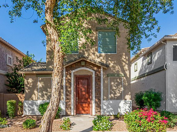 Welcome to this well-maintained two-story residence in Crismon Creek Village! Discover a perfectly flowing living & dining room ideal for entertaining and relaxation. Features like tile flooring, abundant natural light, and neutral tone are worth mentioning. The kitchen comes with plenty of white cabinetry, track lighting, stainless steel appliances, tile backsplash, granite counters, and a breakfast bar. The bright primary bedroom offers comfort and daily convenience, complete with plush carpet, a private bathroom with dual sinks, and a walk-in closet. PLUS! This home includes a bonus room ideal for an office, media space, or additional lounge zone. Have your morning coffee on the cozy patio. What are you waiting for? Just pack your bags and move in!