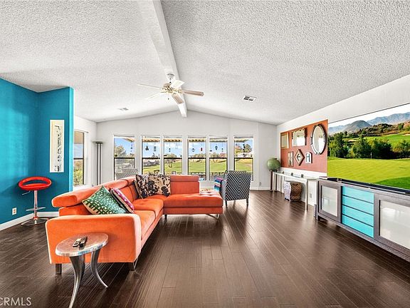 Welcome home to this charming residence located in the highly desired 55+ Highland Springs Village community. Offering 1,990 sq ft of comfortable living space on a 4,356 sq ft lot, this 2 bedroom, 2 bathroom home features a warm and inviting layout you’ll love coming back to. Enter through the spacious sun room, a bright and relaxing space perfect for morning coffee, tending to plants, or enjoying a quiet afternoon read. This opens into a welcoming living and dining area highlighted by a cozy fireplace and large windows that allow natural light to flow throughout the home. The primary bedroom offers a peaceful retreat with plenty of space and natural light. The primary bathroom is beautifully appointed with dual sinks, a walk-in shower, soaking tub, and ample cabinet storage. The secondary bedroom is generously sized, perfect for guests or use as an office/workspace. Step outside to enjoy your private backyard that overlooks the golf course, complete with your own gate access to the greens and a dedicated golf cart garage with direct access onto the course—ideal for golf enthusiasts or those who love easy outdoor living. Whether you enjoy scenic evening walks or a morning round, this setting brings tranquility right to your doorstep. Highland Springs Village offers resort-style amenities including a clubhouse, pool, spa, tennis courts, and a 9-hole golf course exclusively for residents. Conveniently located less than 2 miles from grocery stores, restaurants, and parks, you’ll have everything you need close by. This home blends comfort, convenience, and a peaceful lifestyle. Don’t miss this opportunity!