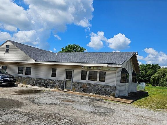 Spacious ranch home with just over 9 acres featuring two ponds (one with a dock), streams, and a wooded area with firepit sites and manicured trails for walking, mountain biking, and ATV fun! Home had a new roof installed in 2020. Combination living and dining room, large kitchen with a breakfast nook. The home also has a bonus room space upstairs. Also included is a large 3 stall garage/shop building. The shop building has a bathroom, office, machine room, and is insulated and heated. The shop is also set up with a raised ceiling for a lift. There is also a storm shelter right out the back door of the house. There are two additional previously commercial buildings with unlimited potential included with the property as well. There is also a large 60' x 30' barn on the property. Great location close to Erie, Saint Paul, Parsons, and Chanute.