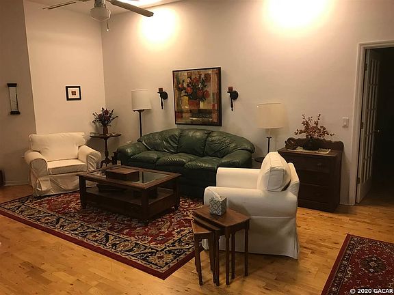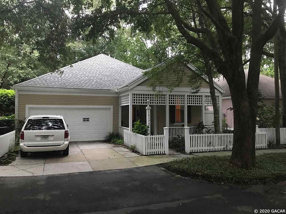 This home is located in the beautiful, serene setting of Haile Plantation's Hickory Walk. The split bedroom/open floorplan is great for entertaining. Enjoy the privacy of the fenced backyard from the luminous Florida/Sun room. This home boasts a large master suite, with luxury masterbath, complete with walk-in shower and a large garden tub. Home has numerous amenities including all appliances and a security system. All of this, with the convenience of a brisk walk to the Haile Plantation Village Center.