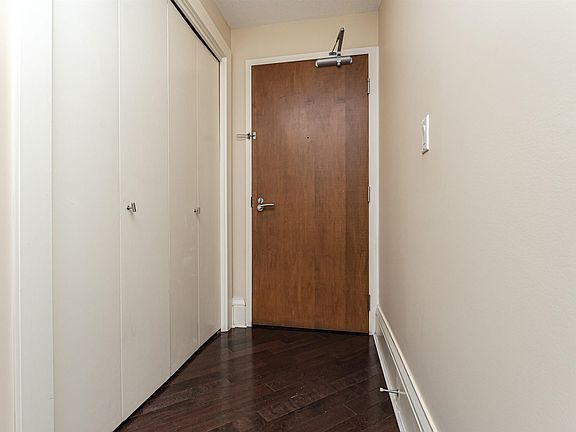 Polished granite countertopsModern stainless-steel appliancesElegant cabinetrySpacious balconyViews of downtownWalk-in closet