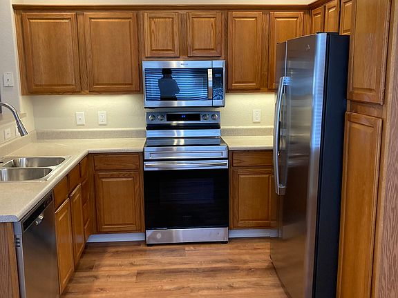 Gated community with security cameras. Very quiet, first floor corner unit. Sparkely clean. Detached garage and 1 assigned parking space. Private balcony. New carpet and flooring. Fresh paint. New appliances. Close to Costco, University Hospital, King Soopers, and schools. Easy airport commute. No smoking on property.