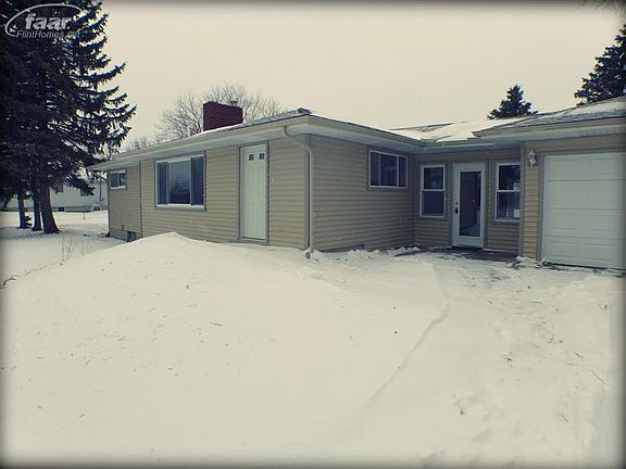 Spectacular piece of property located on the South side of Davison Township near Goodrich. Located Just 1/10th of a mile West of M-15 this 4.89 acre piece of heaven is calling to you! Sprawling & Rolling describes this land offering wildlife, trees, and orchard. Newer Pole building 24 X 40 with concrete floor, 2 - 8ft doors and a 10ft ceilings, Interior dog kennel, exterior dog run and more! The home itself is well updated with newer kitchen, siding, roof, and well. Great room area is 23 x 16 with natural wood burning fireplace. Bathroom has been updated with ceramic tile throughout. Kitchen comes with all appliances! Basement is partially finished too. Hunters and Hobbyist don't miss out.