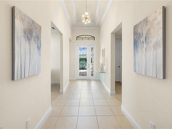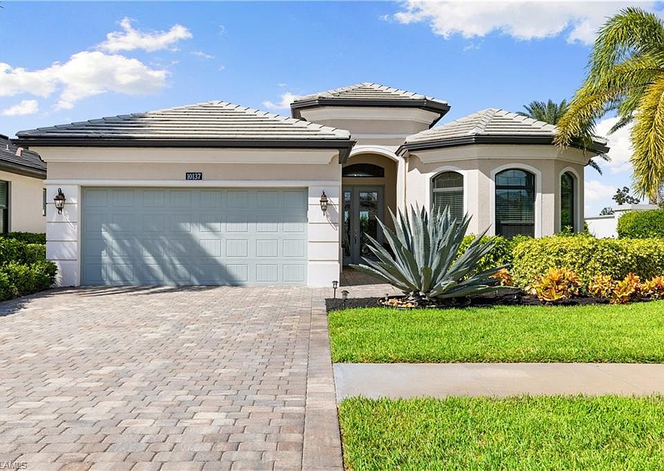 Imagine coming home to a place where golden light pours through every window, where evenings unfold beside a sun-drenched pool as the sky turns coral and gold. Built by Toll Brothers in 2018, this modern residence captures the essence of relaxed Naples living—stylish, private, and perfectly designed for the way you live today. Tucked on a corner lot with western exposure, the home offers a rare sense of openness and calm. The spacious backyard and side yard invite morning coffee in the sun, playtime with pets, or quiet weekends spent lounging by the pool while the gentle floating fountain adds a touch of tranquility. Step inside and you’ll feel the thoughtful flow of the open-concept design—where the great room and gourmet kitchen connect seamlessly for both daily living and effortless entertaining. The kitchen features white shaker cabinetry, granite countertops, a large island, and stainless-steel appliances including a gas cooktop and wall oven—every detail tailored for comfort and function. Glass sliders draw you outdoors to a screened lanai surrounded by lush, low-maintenance turf—perfect for al fresco dinners, sunset gatherings, or peaceful afternoons by the pool. The owner’s suite feels like a private retreat, where tray ceilings and bay windows create an airy, sunlit atmosphere. Two custom walk-in closets offer generous storage, and the spa-inspired bath features a walk-in shower with bench and dual vanities topped with granite. Two guest bedrooms provide inviting accommodations, while the flexible den adapts effortlessly—ideal for a home office, media room, or even a fourth bedroom when guests arrive. Every detail—impact-resistant windows, tile roof, epoxy garage floor, and central vacuum system—speaks to quality and care. Located within the gated community of Palazzo at Naples, this home places you minutes from Mercato, Coconut Point, and the pristine Gulf beaches, with downtown Naples and Bonita Springs just a short drive away. Whether you’re seeking quiet mornings by the pool, sunset cocktails under the lanai, or spontaneous trips to the beach, this home offers the perfect balance of luxury, privacy, and coastal ease—all with low HOA fees. Residents have the option to join nearby Quail Creek and Longshore Lake, offering access to premier golf, dining, and lifestyle amenities.