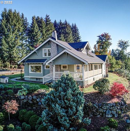 Back on market due to buyer losing financing. No fault to seller. Beautiful Craftsman farmhouse on bluff above Willamette River. Over one acre of land, ample parking, a pond, mature landscaping, terraced yard, and chicken coops. Basement private entrance and potential for bedroom. Newer AC and HVAC, water softener, water filter, updated light fixtures, new interior paint, and brand new roof. Bonus room, office, and dedicated laundry room all on main level.