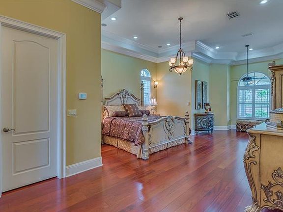This home has ALL the bells and whistles! Nestled in a quiet cul-de-sac in the much sought after Woodland Waters Community. This home features an elegant tile roof, gourmet kitchen with brazilian cherry hardwood and marble flooring, rich granite and top of the line appliances. Also a built-in coffee brewing station and center island gas range. With a master suite as one of the 5 generous bedrooms plus 6 & 1/2 baths this home has tons of space! There is a study/office as well as an entertainment room w/72'' projection screen, surround sound, pool table, lighting and fully equipped bar w/brass foot rails. A Lanai is surrounded by privacy gate & features outdoor grill, range & cabinet storage. Saltwater system pool & spa complete this amazing home! Must see to truly appreciate the fine workmanship and details of this on of a kind home.