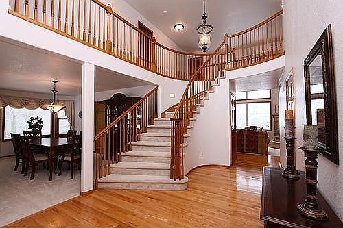 With over 3300 finished square feet, this house is a dream! This gorgeous mountain view home, built in 1994, backs to open space, is just steps to Highlands Ranch Trails and is located in the very quiet cul de sac of the highly sought after Falcon Creek! Get wrapped up in the spiral staircase, vaulted ceilings, hardwood and open floor plan. The gourmet kitchen, complete with island/breakfast bar and black appliances offers lots of space for cooking and entertaining-- enough to make you want to show off that dining room! Every bedroom comes with individual bathrooms or Jack and Jill style. The master suite; that's quite generous in size, offers a recently remodeled 5-piece bathroom-- complete with large soaking tub, dueling shower heads, his and hers sinks and closets!