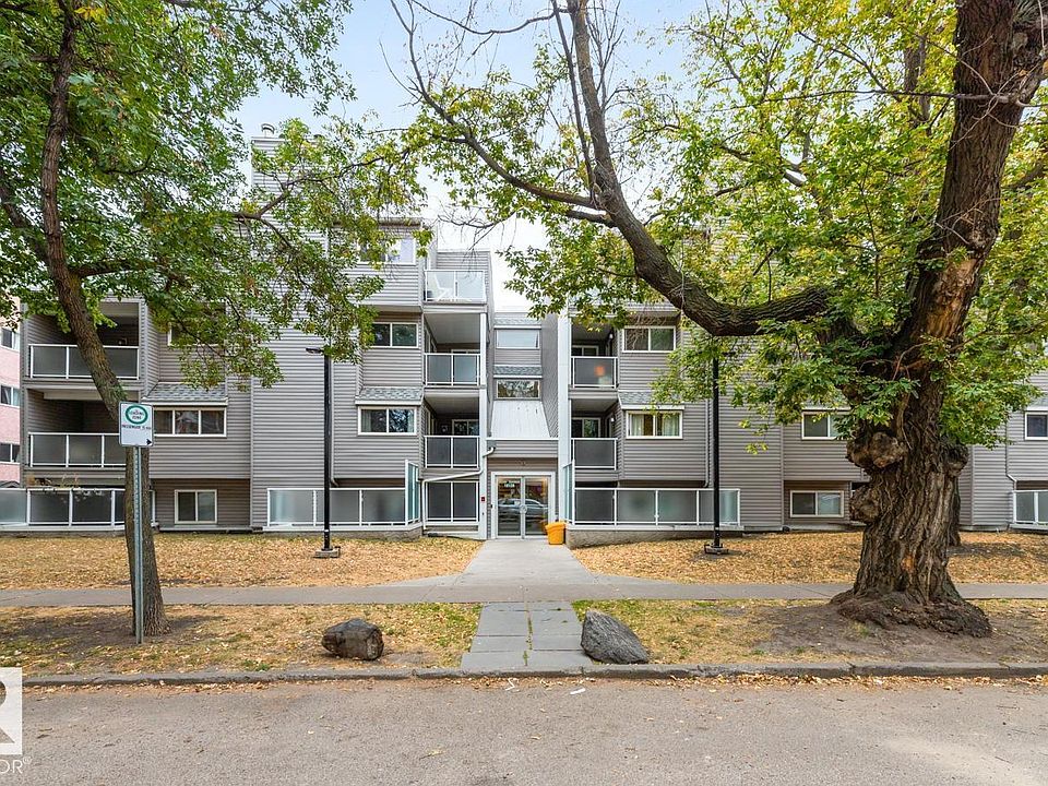 Welcome to this exceptional unit located just west of the downtown core, nestled in an urban area characterized by tree-lined streets, dedicated bike paths, and convenient access to cafes and shops. This inviting condominium features a modernized kitchen with new appliances, seamlessly connected to a spacious living area highlighted by soaring vaulted ceilings and a striking stone fireplace. Boasting two comfortable bedrooms, an updated four-piece bathroom, and in-suite laundry, this unit is ideal for contemporary living. Additional benefits include an oversized storage locker on the same floor and a west-facing balcony perfect for enjoying quiet summer evenings, as well as a heated underground garage for winter convenience. With easy access to the University of Alberta and Grant MacEwan University, along with efficient transit and roadway options, this home meets all your lifestyle needs.
