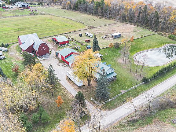 Welcome to your dream country retreat! Nestled on 7.66 picturesque acres, this beautifully remodeled 5-bedroom, 3-bath home offers the perfect blend of modern luxury and cozy farmhouse charm. Every inch of this property has been thoughtfully updated from top to bottom, featuring a stunning open-concept layout, designer kitchen, and spa-inspired bathrooms. Enjoy peaceful views and plenty of room to roam with multiple barns and outbuildings, including a heated pole barn—perfect for hobbies, storage, or livestock. A scenic pond adds to the tranquility and natural beauty of the property, making it ideal for outdoor enthusiasts. This move-in-ready estate delivers the best of country living with all the comforts of modern design—just minutes from Hudson amenities.