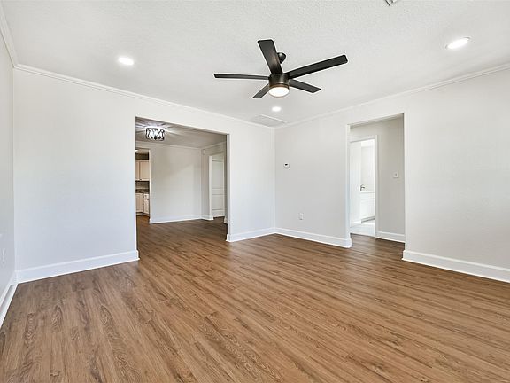 Pristine remodeled open concept home for personal use or Airbnb*Living room has crown molding, recessed lighting & remote control ceiling fan with light fixture*Formal dining room with crown molding and chandelier*Kitchen has cabinets with crown molding, granite counters, tile back splash, stainless steel double undermount sink, new oven/stove and built-in microwave*Fresh interior paint*Rounded sheetrock*Ceiling fans in all bedrooms*Raised panel doors*Primary bathroom has Mable counters, double sink vanity, new toilet tile flooring and tile enclosed tub/shower*oversized one car garage 21 x 14*Fenced enclosed back yard*New stone front porch*Large breakfast room/flex room could be used for addition sleeping space for Airbnb - room for two double bunk beds. Great location near shopping, restaurants, The Strand, the beach and all local amenities.