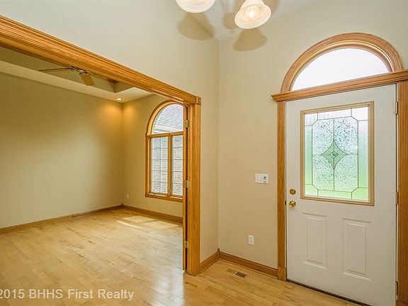 Great ranch plan! Extra-large 3 car gar, formal dining, office or den off front entry, 2 sided fireplace, hardwood floors and a great private location. Huge basement waiting for your finishing touches.