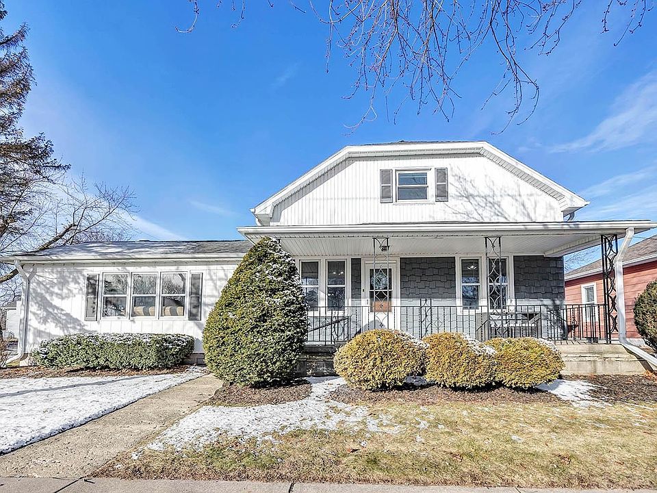 Charming De Pere home situated on landscaped setting w/privacy fenced back yard. Blocks from St Norbert & West High. Inviting covered front porch opens to a sun-drenched home that is freshly painted and offers updated flooring & modern light fixtures in kitchen dining & entry. Beautifully renovated kitchen. Living room accented by beamed ceilings & relaxing fireplace. Main level also offers a convenient bedroom w/double closet, bath w/walk-in shower & laundry room w/extra storage. Upstairs you will find a spacious bedroom w/walk-in closet & adjoining sitting area or office space, 2 more bedrooms, bath & bonus room that would make a great wardrobe room or storage. Garage with carport plus convenient 13x6 storage shed in the backyard. Please allow 48 hours for binding acceptance.