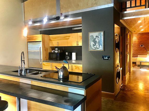 FURNISHED LOFT with UTILITIES INCLUDED. LEASE TERMS: One month up to one year. PARKING: There is onsite parking for two vehicles. REQUIRED CREDIT SCORE: 750 SECURITY DEPOSIT: $2,000. (Depending on the length of stay we may have some flexibility on the deposit amount.) No Pets. No Smoking No Parties This loft is FULLY FURNISHED with UTILITIES and suitcase ready! Will consider shorter term agreement under 30 days without a lease. Leases may also go month to month and will be extended if both parties are agreeable. We require a 750 plus credit score. Airplane hangars turned lofts. The Hangars @ Owens Field is a contemporary community of seven uniquely designed lofts. This loft is approximately 1250 square feet and consists of a lounge area which blends into a custom made kitchen, one large bedroom, a bathroom with sliding barn doors, a spacious walk in closet, and an expansive upstairs bonus room, perfect for an office or media room, accessed by a custom spiral staircase. The Hangars has been featured on two HGTV productions, "What You Get for the Money" & ; "You Live in What?" (Washer and Dryer also included). This loft is FULLY FURNISHED! Will consider shorter term agreements under 30 days without a lease. Leases may also go month to month and will be extended if both parties are agreeable. On year leases are preferable