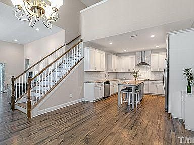 Rare opportunity! Beautiful end unit 2-level townhome featuring a master suite on the main floor, 2-car garage, and a spacious open floor plan filled with natural light. Enjoy a stylish white gourmet kitchen, convenient 1st floor laundry, and a covered porch - all designed to make first floor living easy and comfortable. Work-from-home in one of the spacious 3 bedrooms or the loft. Hardwood staircase. Great backyard facing an open space. Community indoor/outdoor pools & clubhouse with gym! Playground & sports fields- 3 min walk. Downtown Durham - 8 min drive. RTP - 7 min drive. Duke University & Hospitals - 10 min drive. Fridge, Washer, Dryer included. Renter is responsible for all utilities.