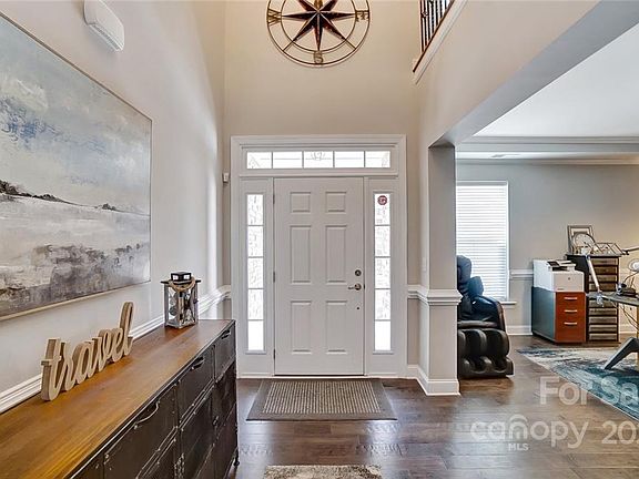 Don't miss this rare opportunity in Allen Mills! Situated on a coveted corner lot, on almost 1/3 acre, a large extended driveway greets you as you approach. Once inside, this meticulously maintained property turns on the charm, welcoming you with an open floor plan, extensive crown molding, and upgrades throughout. With a spacious kitchen, butler pantry, covered back porch, and bedroom/full bath on main level, you have plenty of room for entertaining year-round. Upstairs you'll find 4 additional bedrooms, a gorgeous primary bath, bonus room, and loft! Each garage is fully insulated with plenty of space and storage, and the one-car garage has an epoxy finish for you to enjoy. Allen Mills is located in the highly desirable Cox Mill area, offers a quick commute to Charlotte and is convenient to all major highways, shopping, dining, entertainment and more!