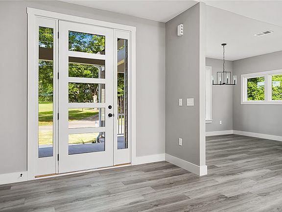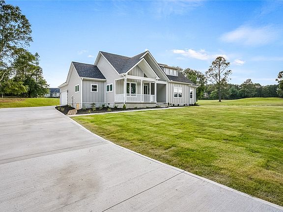 Welcome to your exquisite new construction modern farmhouse, gracefully nestled along the serene expanse of Cobbs Glen golf course. This single-level retreat epitomizes the perfect union of contemporary elegance and rural charm, boasting unparalleled craftsmanship and thoughtful design. The open-concept layout seamlessly integrates the living, dining, and kitchen areas, fostering a sense of connectivity and spaciousness, perfect for both entertaining and everyday living.
