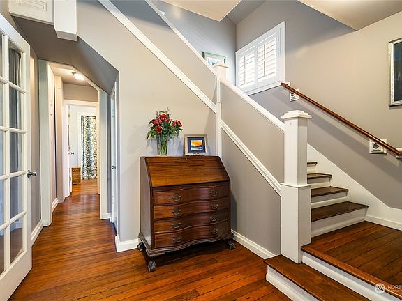 This well-maintained 1906 2-story Craftsman home boasts an abundance of architectural intricacies. Coffered ceilings in living & dining area. Plantation shutters. Wood floors throughout main level continuing upstairs to the spacious mezzanine. 4 sets of French doors w/enclosed blinds. Kitchen w/granite counters & ceramic tile flr. Updated bathrooms, lower w/step in shower. Back yard designed by master gardener, large deck. Dt garage off alley. Double lot. Tankless water heater. Near downtown, Trader Joe’s, Kulshan Brewery, parks, trails & schools.