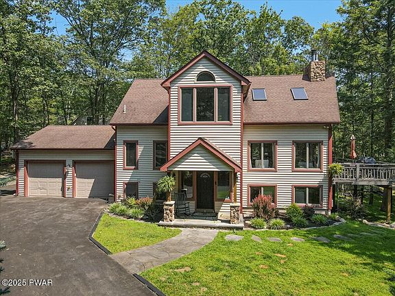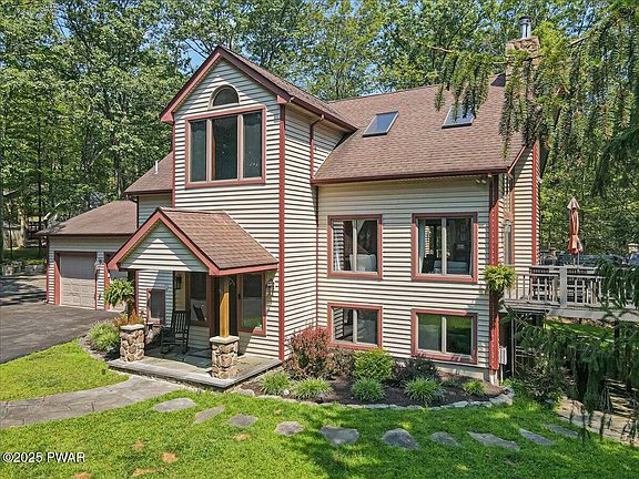 Discover comfort, space, and style in this beautifully maintained 5-bedroom, 3-bath home, perfect for you in the amenity filled community of Wallenpaupack Lake Estate. Featuring a full finished basement, an updated kitchen, charming details throughout, this home offers a blend of modern convenience and cozy living. The beautifully renovated kitchen with sleek granite countertops, modern appliances, and ample cabinet space, ideal for everyday cooking and hosting. Relax in the inviting living room, complete with a classic wood-burning fireplace that adds warmth and charm. Wall unit air conditioners throughout the home keep you cool in warmer months. The fully finished basement provides additional living space, perfect for a family room, home gym, office, or guest suite. With five generously sized bedrooms and three full bathrooms, there's plenty of room for everyone.