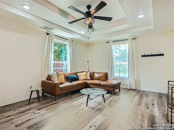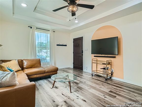 Step inside the most adorable 3/2 home and be greeted by an open-concept living area flooded with natural light, creating a welcoming atmosphere. The modern upgrades give the home a contemporary feel with a classic charm. The kitchen offers stainless steel appliances, sleek countertops with large bar island, and ample cabinet space. Adjacent to it is a cozy dining area, ideal for shared meals or command center for all your game night fun. Retreat to the primary bedroom, complete with 2 closets, and an en-suite bathroom. The two additional bedrooms offer versatility for personalization or a home office. The updated bathrooms showcase elegant fixtures and pristine finishes. Outside, a private backyard oasis awaits, perfect for relaxating in the shade of the many mature trees or hosting pachangas with all your friiends. Located conveniently in San Antonio, you'll have easy access to I10 for shopping, dining, parks, and entertainment. Don't miss out on this adorable 3/2 home and experience the perfect blend of style, convenience, and a welcoming community.