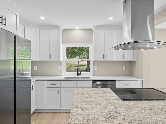 Sleek stone countertopsBrand-new bathroomsCar portRecessed lightingNew lvt flooringGourmet kitchenHigh-end stainless appliances