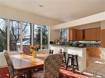Winter water views from this distinctive Orienta Point modern home, built atop first floor 19th century intact carriage house. Level, park-like .78 acre. Loft-like interior with open floor plan, lots of light and ground floor professional or au-pair suite with separate entrance.