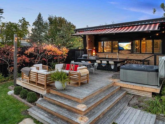 Exceptional opportunity in downtown Petoskey! This beautifully updated 5-bedroom, 3-bath ranch-style home with a spacious walkout basement sits just a few blocks from the heart of Petoskey's historic Gaslight District and backs up to a public park. Thoughtful landscaping and a fully fenced backyard create a rare sense of privacy for an in-town property. The main level features three bedrooms and two full baths, with hardwood flooring throughout, a wood-burning fireplace, and a wall of windows that fill the space with natural light while offering views of the property and seasonal glimpses of the bay. The fully remodeled walkout basement adds remarkable versatility with two additional bedrooms, a full bath, a home theater, wine room, and dedicated spaces for an office and workout area—all anchored by a large gas fireplace. Outdoor living shines here. The expansive back deck is designed for entertaining and relaxation, featuring a covered outdoor kitchen, retractable awning, generous seating area, hot tub, and lush gardens. Completing the picture is a custom wood-fired sauna with a dressing room and outdoor shower. Truly, this home captures the essence of northern Michigan living—combining privacy, comfort, and proximity to all that downtown Petoskey has to offer.