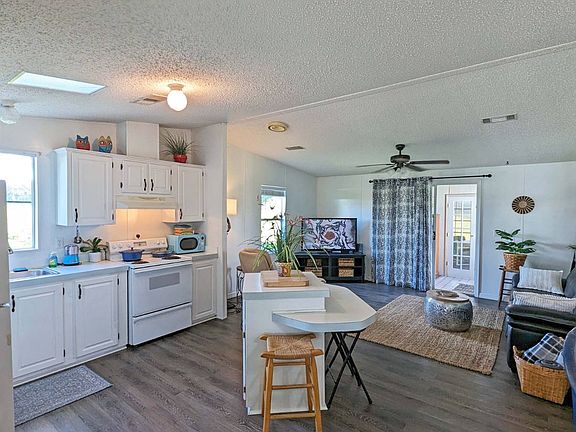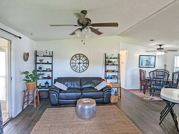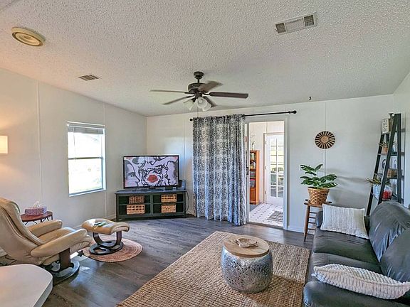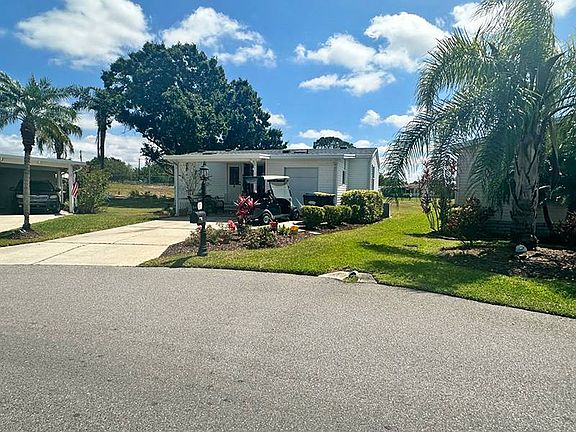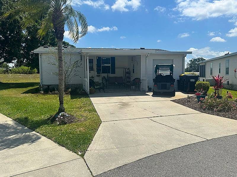 This home is a 1995 Fleetwood with 1008 sq. ft. It has 2 bedrooms and 2 bathrooms along with a breezeway between the home and the large lanai. This delightful home is full of character that feels much larger than its square footage. It has an open-plan living space with a bright and airy feel. The kitchen is compact but fully functional with plenty of storage. There is an outdoor sitting area at the front of the driveway which is perfect for relaxing. KEY FEATURES: • Golf Cart Included • Furniture: Some Negotiable • Kitchen Island. This home has a new roof in 2023 and has a spacious back yard on the 8th Tee Box with a pond view. The purchase includes the golf cart (pictured in the driveway) and includes ONE YEAR FREE GOLF. Don't miss out on this incredible offer to own a home in Four Lakes Golf Club. Contact our onsite Resale Agent to schedule a showing or make an offer.