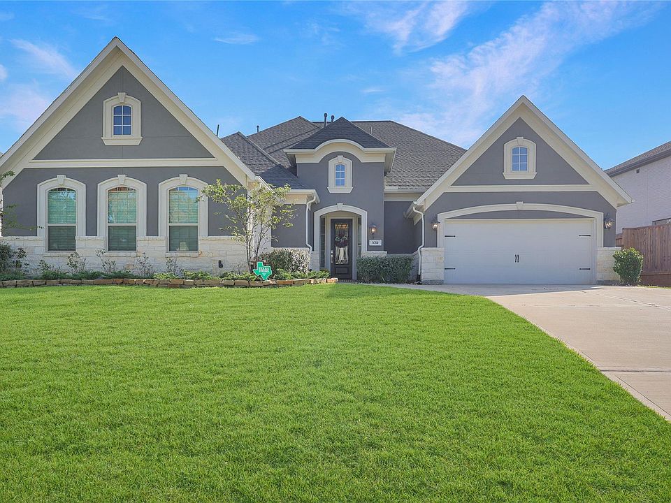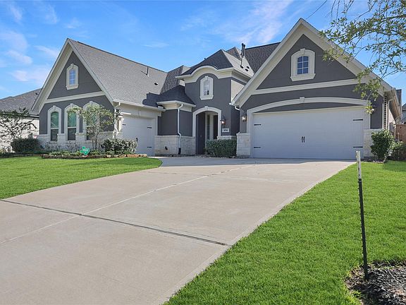 Highly coveted Village Builders, Classic Collection – Cappiello plan featuring eye-catching exterior design, 4 spacious bedrooms and 3 full bathrooms, private study, formal dining room, laundry room and a split 3-car garage! The cozy, yet spacious, primary suite is accented by a large bay window and tray ceiling, providing a sense of depth and thoughtful design. Relax in the spa-inspired en-suite bathroom featuring a separate tub and shower, with a large split walk-in closet. The open-concept, gourmet kitchen features elegant cabinetry, upgraded stainless steel appliances, a large piano-shaped island and breakfast area. The kitchen and formal dining area perfectly flow into the inviting living room with a built-in fireplace, creating a warm and entertaining space, ideal for everyday living. The Texas sized covered patio is ideal for outdoor entertaining or just simply relaxing. You get it all, style, luxury, comfort, and much more!