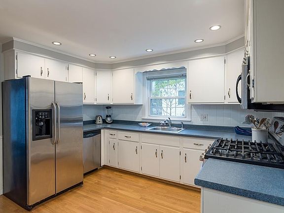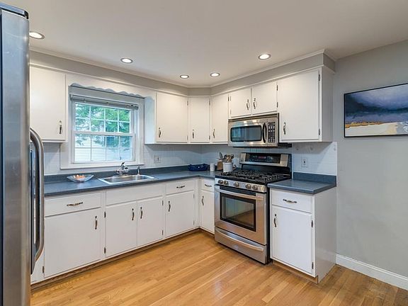 Fall in love with this light and bright, sun filled Pottery Barn Cape! You will be delighted with the layout and SPACIOUS living areas..with the added bonus of a great room with French doors leading to a 25x20 custom deck overlooking a park like, fenced in backyard with variety of mature trees. Enjoy gleaming hardwood floors throughout, with a friendly and versatile floor plan combined with a location that is impossible to beat. Features include a stunning dining room with fireplace, comfortable kitchen with stainless steel appliances, fabulous great room and generous bedrooms with ceiling fans and built ins. Choose a first or second floor master bedroom, both levels have full baths. Improvements include: Architectural shingled roof, replacement windows, 2 year old PurePro gas boiler, 200 amp electric service, and freshly painted interior and exterior. Two sheds and a full basement offer plenty of storage options. This jewel of a home checks off all the boxes!